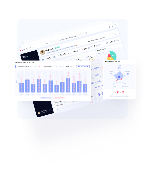Zepo gives you a centralized view of your human risk — track team performance, identify weak points, and take action before threats turn into incidents.