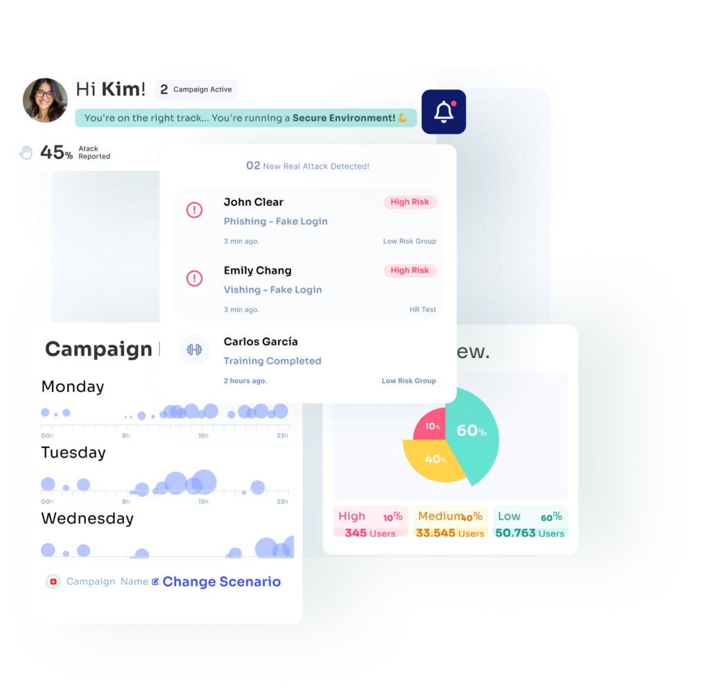 Identify GenAI-powered threats, simulate social engineering attacks across channels, and take control of your organization’s human risk — all from one powerful, insight-driven platform.