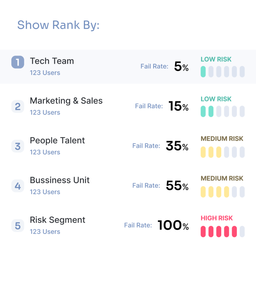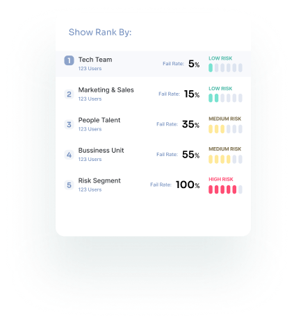 Track Gen-AI driven threats, launch multichannel social engineering tests, and gain control over your company’s security with powerful insights into your team’s risk levels.
